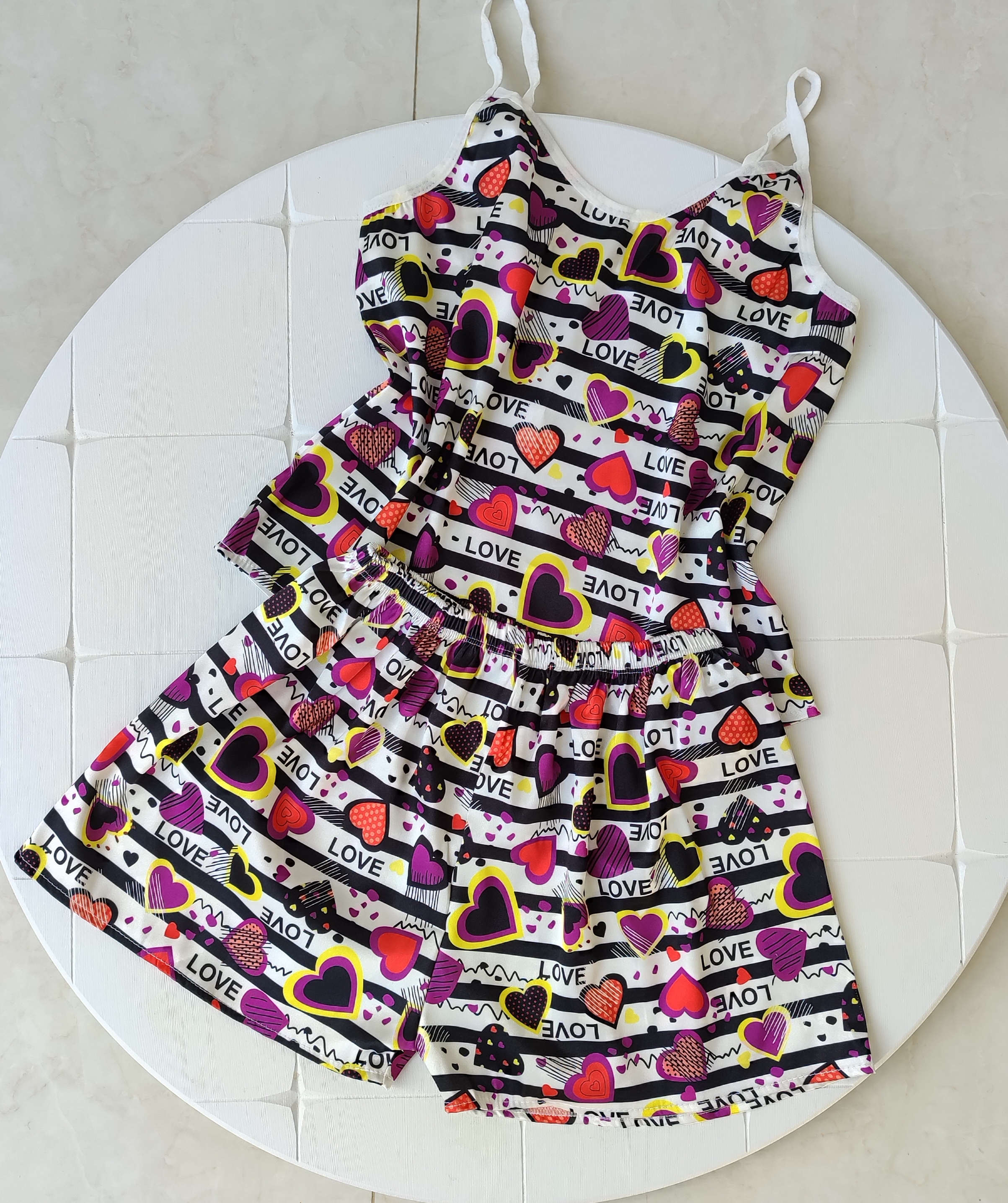 ست لباس خاب ساتن شامل تاپ و شلوارک